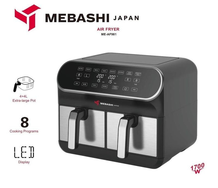 از مشخصات برجسته سرخ کن مباشی مدل ME-AF981 می توان به این اشاره کرد که به یک صفحه نمایشگر لمسی مجهز شده است. به این صورت می توانید تنظیم برنامه و دمای پخت غذا را به راحتی انجام دهید. این سرخ کن یک طراحی جذاب است که مخزن:۸لیتر(۴+۴) لیتر را در اختیار شما قرار می دهد. که به راحتی می توانستید از خانواده خود پذیرایی کنید. این محصول به تایمر مجهز است و دارای برنامه پخت متنوع می باشد.