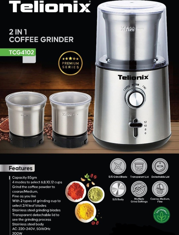 آسیاب تلیونیکس مدل 4102 برای کسانی که طعم و عطر قهوه و ادویه برایشان اهمیت بالایی دارد. این آسیاب به دلیل تیغههای قوی و بادوامی که دارد به آسیاب قهوه معروف است اما از این دستگاه برای آسیاب انواع خشکبار، زعفران، ادویه و… نیز میتوان استفاده کرد و فقط محدود به قهوه نیست.